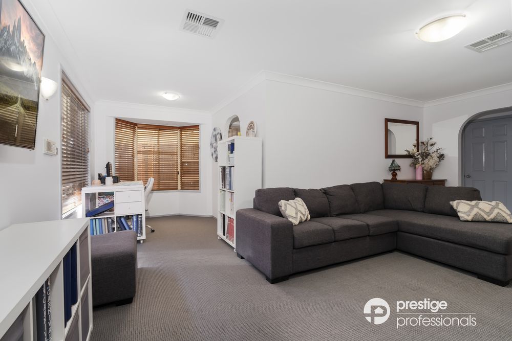 The heart of the home is the generous kitchen equipped with gas cooking and ample storage, overlooking the inviting alfresco area, perfect for family gatherings. Low-maintenance yet elegantly landscaped gardens frame the residence, offering a serene backdrop to this suburban retreat.