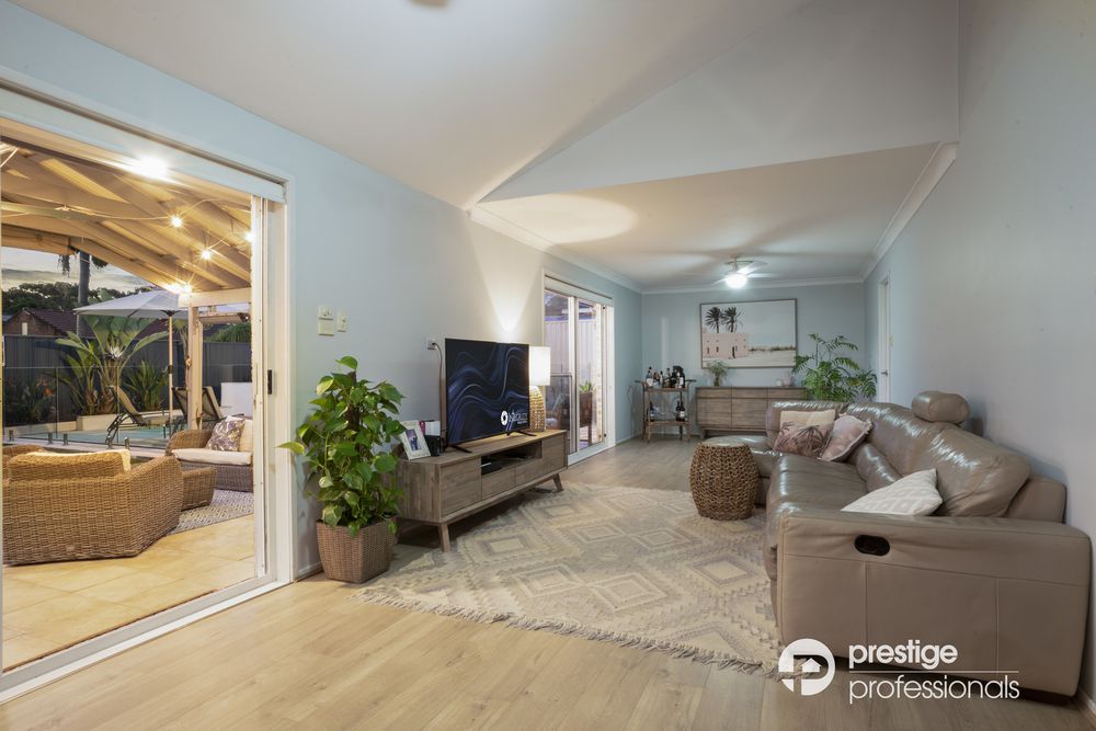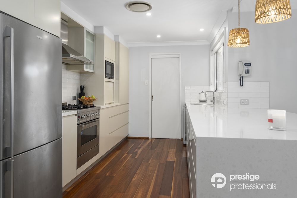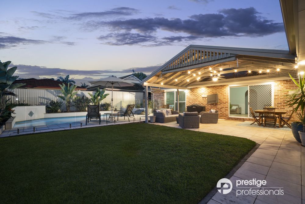 Lavish in design, this property features multiple living spaces, including a separate lounge, a dining area, and an expansive family/rumpus room with striking raked ceilings. The modern chef's kitchen, equipped with gas cooking, stone benchtops, and stainless-steel appliances, promises to be the heart of the home.