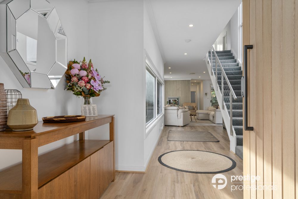 Flooded with natural light, the residence encompasses multiple living areas, including a commodious open plan lounge and dining space, complemented by a sizable upstairs rumpus area. Deluxe inclusions such as sleek timber flooring, ducted air-conditioning, downlights, and an alarm system elevate the home's appeal.