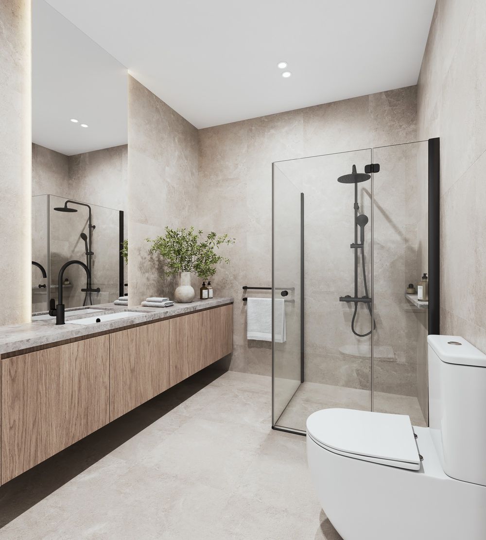• Luxury bathrooms with freestanding bath & modern vanity with stone benchtops
