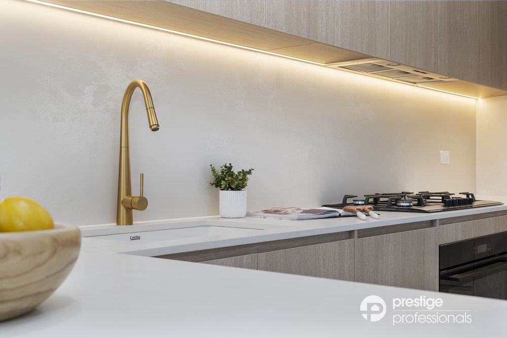 - Gourmet kitchen with stone benchtops, gas cooking, LED ambient lighting & ample cupboard space